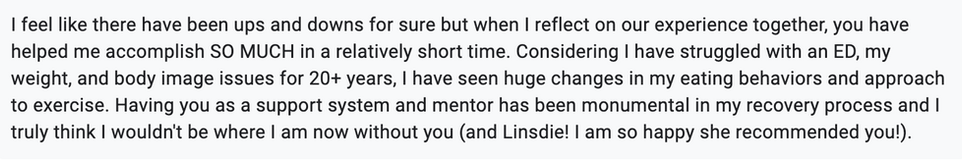 I’m here for you if you’re tired of fighting your body and just want to feel at home in it; if you’ve spent years cycling through diets, restriction, or food guilt; or if you’re craving grounded, compassionate support with nutrition, body image, and the messiness of life itself.