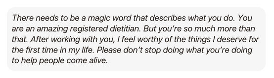 By then, I had finished my Master’s in Nutrition, become a Registered Dietitian, and started a virtual private practice, which became full quickly.